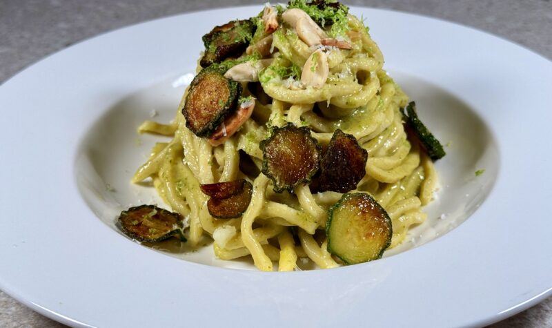 Spaghetti alla chitarra with zucchini cream and pecorino