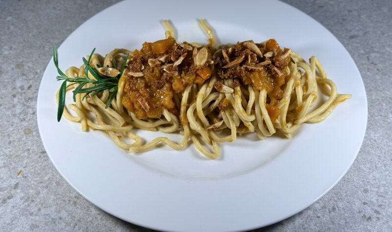Spaghetti alla chitarra with Pumpkin and Almonds