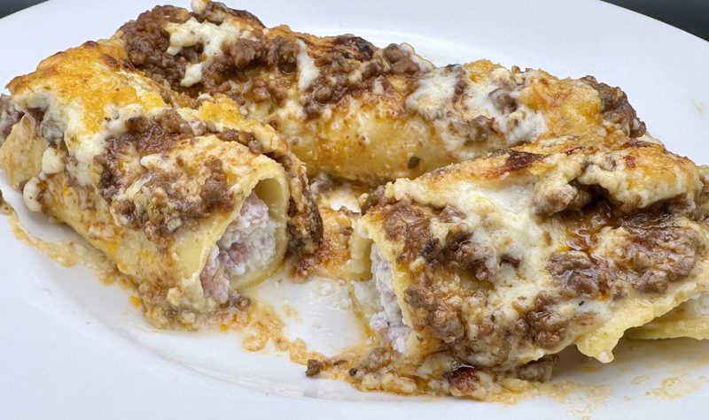 Cannelloni is a valid alternative to lasagne, and a little lighter as it is filled with sheep ricotta cheese. Similar to Cannoli they are dressed with Bolognese and Béchamel sauce, topped with Parmigiano Reggiano to get a crunchy crust.