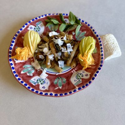 Penne con ricotta e zucchine in scapece (Penne with fried zucchini ala “scapece”) (Leave a review) 40 Min. plus 2 hours for the marinate Recipe by Carlo