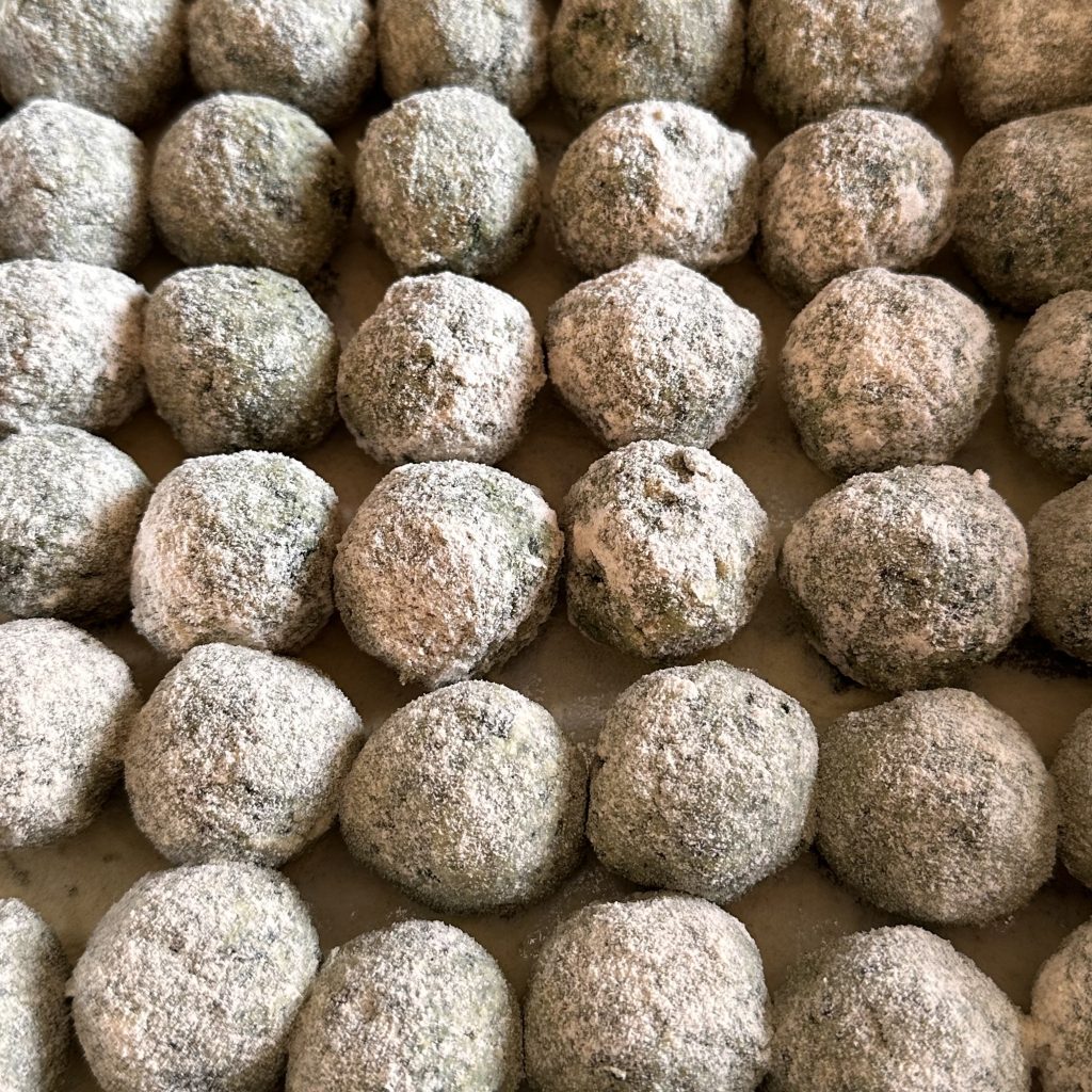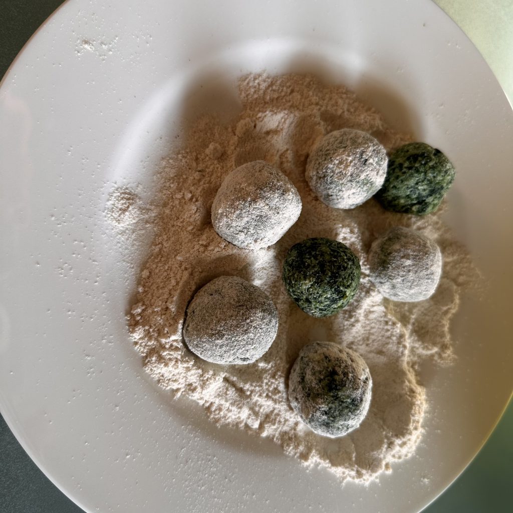 - Generously sprinkle a tray with semolina flour. Form the gnuds with slightly damp hands. They will have to be slightly smaller than a walnut. Gently roll the gnudi in the semolina flour, then leave them in the tray on the flour. Semolina creates a film around the gnuds, preventing them from melting in boiling water.