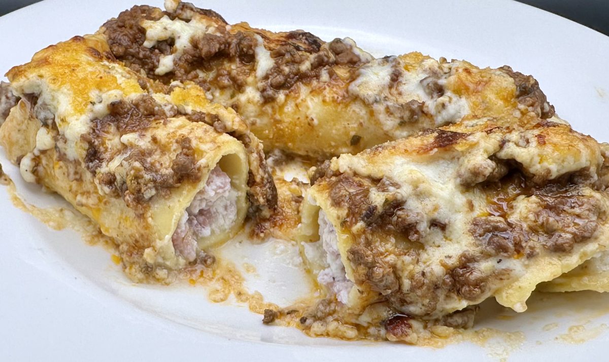 Cannelloni is a valid alternative to lasagne, and a little lighter as it is filled with sheep ricotta cheese. Similar to Cannoli they are dressed with Bolognese and Béchamel sauce, topped with Parmigiano Reggiano to get a crunchy crust.