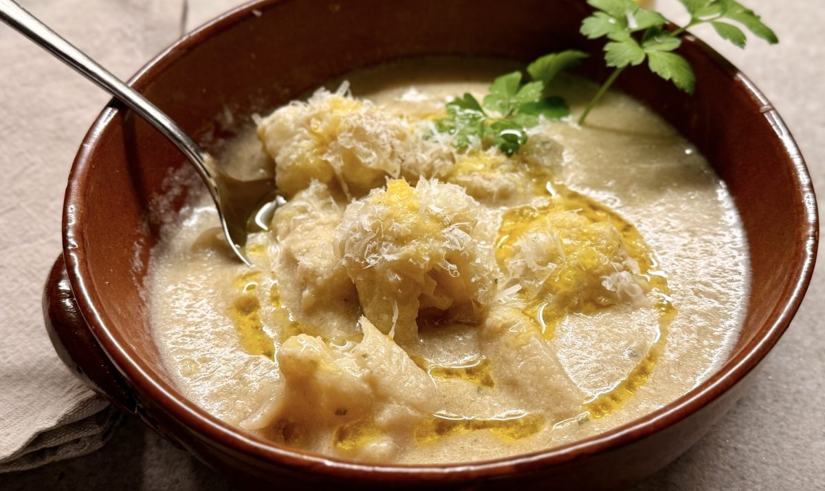 - Remove the soup from the heat and serve, garnished with grated Parmesan cheese and a drizzle of extra virgin olive oil.