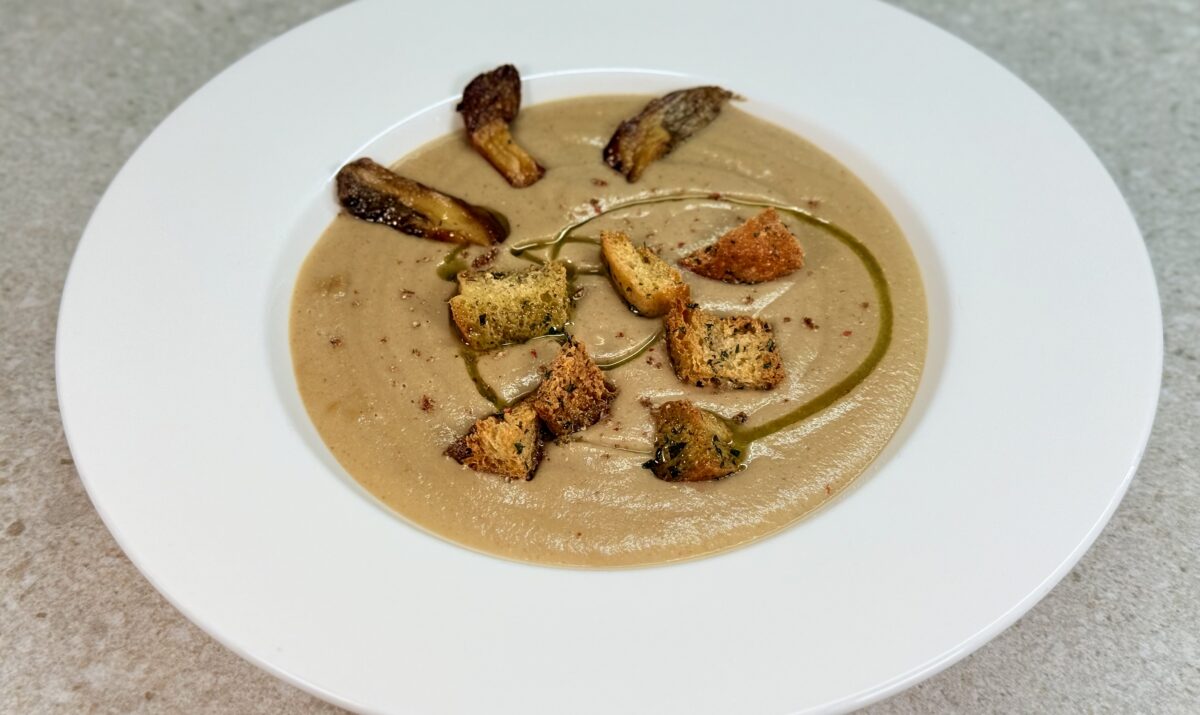 Creamy Porcini Mushroom Soup with Herb Croutons