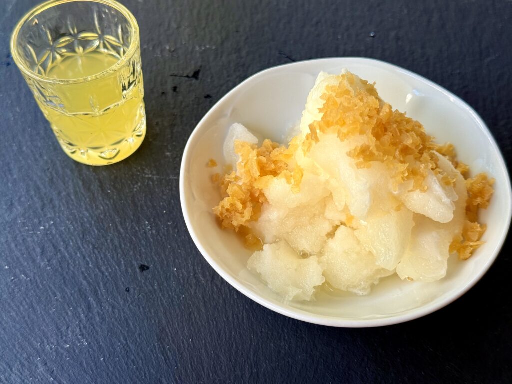 Always looking for healthier and tastier food, I couldn’t help but mention Cremolata: it looks like a granita or sorbet, but it’s essentially fresh fruit spun into a silky, spoonable ice. If there’s an ice cream maker at home (even a simple, inexpensive one), Cremolata is a must-try—easy, light, and incredibly refreshing.