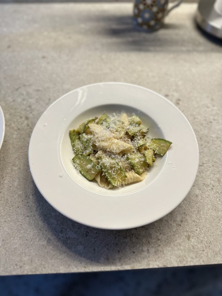 Garganelli are a sort of homemade penne, but much lighter and tasty, this version was made with homemade garganelli dressed with stewed shallots and sautee zucchini… gnam!