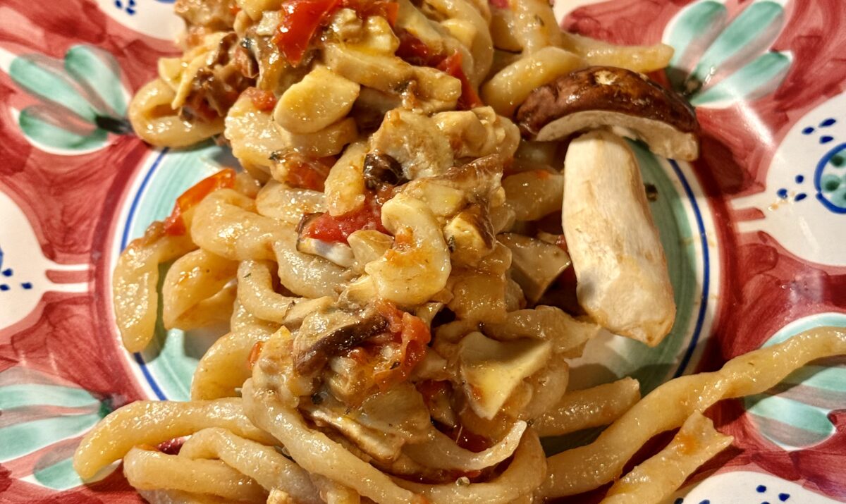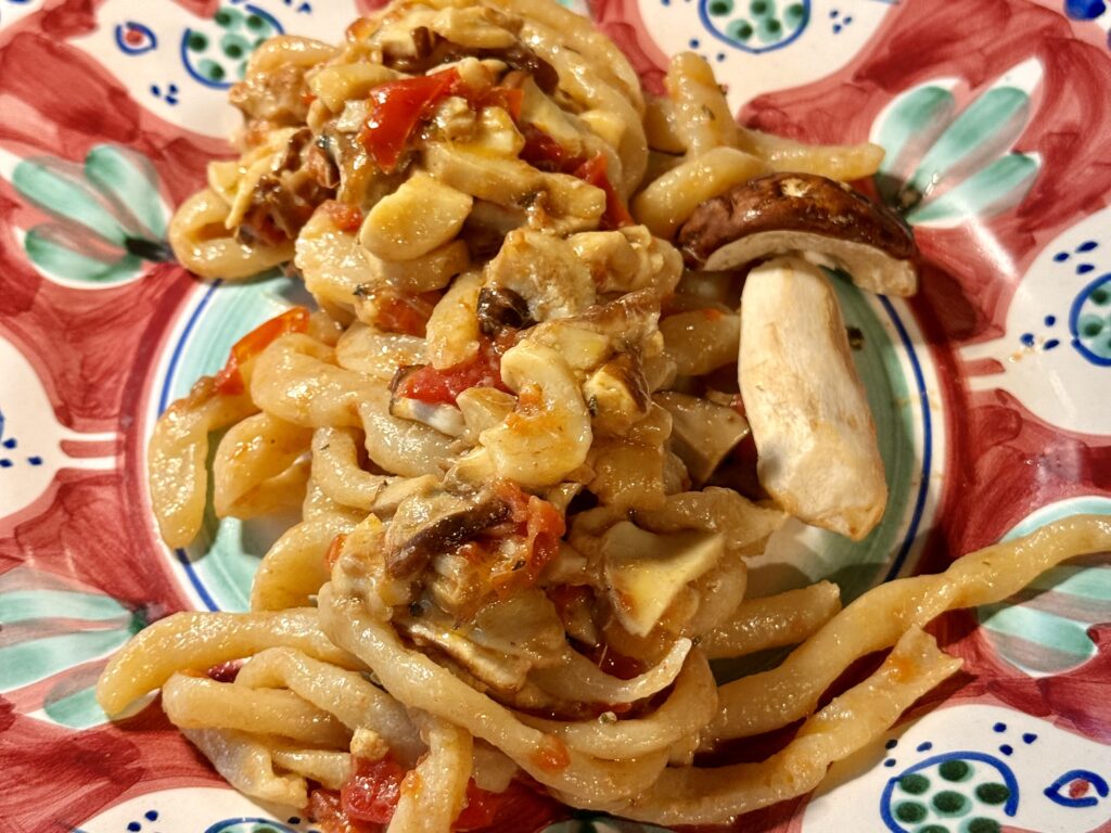For a twist and to brighten up their deep, earthy flavors, this recipe pairs them with hand-rolled Tuscan pici pasta, some sautéed cherry tomatoes, and a touch of nepitella — a wild herb that gives a delicate minty aroma we love so much here in Tuscany.