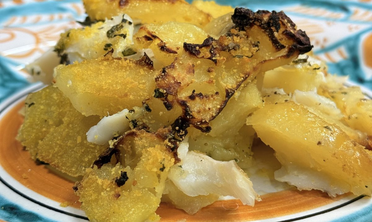 Baccalà: from humble beginnings as a fish for those who couldn’t afford fresh seafood, to now being a gourmet choice, almost as pricey as sea bass! It’s incredibly flavorful and versatile, perfect for countless recipes. Here’s a simple yet delicious version—oven-baked with potatoes and fresh oregano!