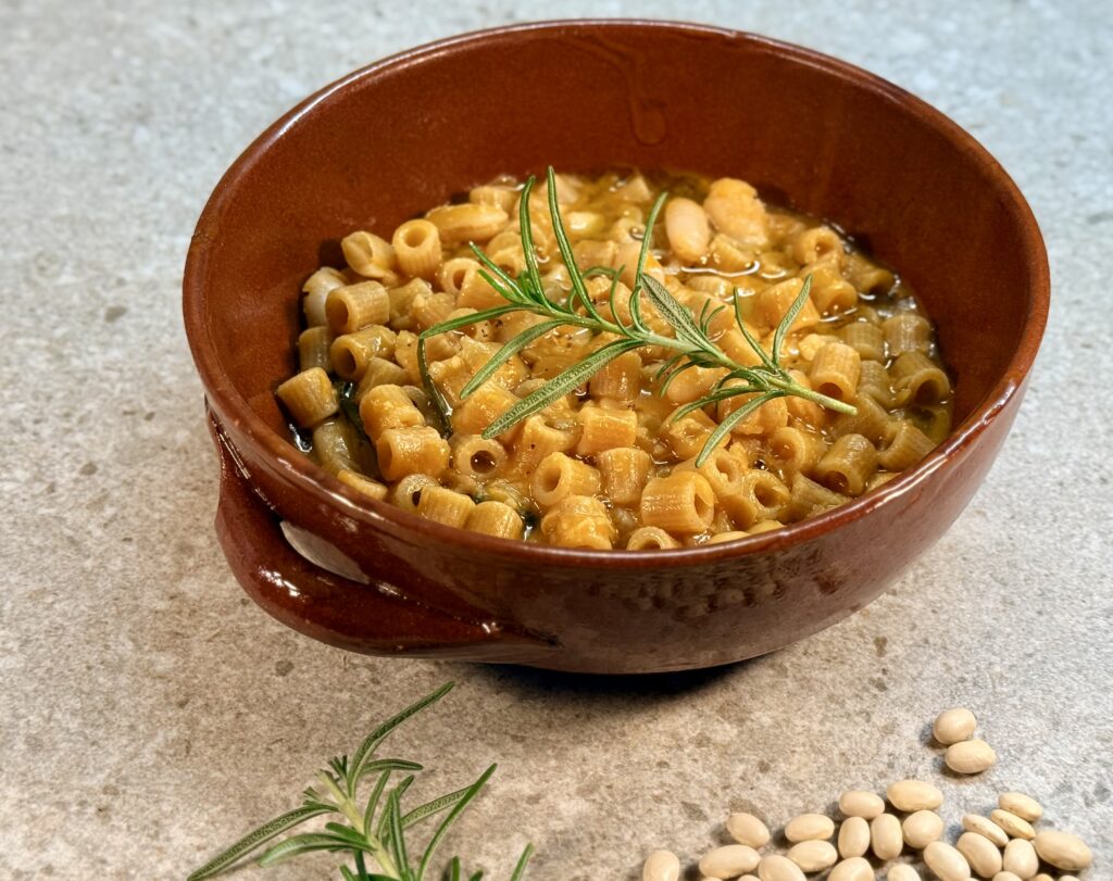 This is a practical, everyday pasta and beans made with pre-cooked cannellini beans.