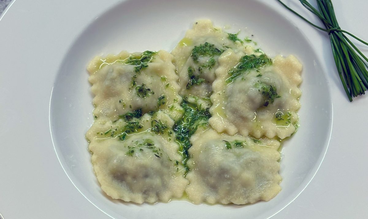 5. Finely chop the herbs and mix them with softened butter to create an aromatic butter. Melt the butter in the microwave before cooking the ravioli.