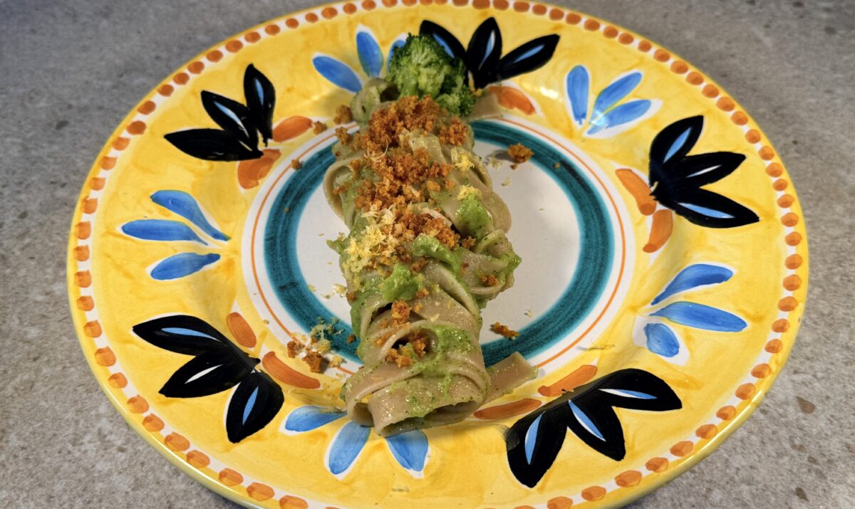 Stone-Ground Tagliatelle with Broccoli Cream and Crispy Breadcrumbs