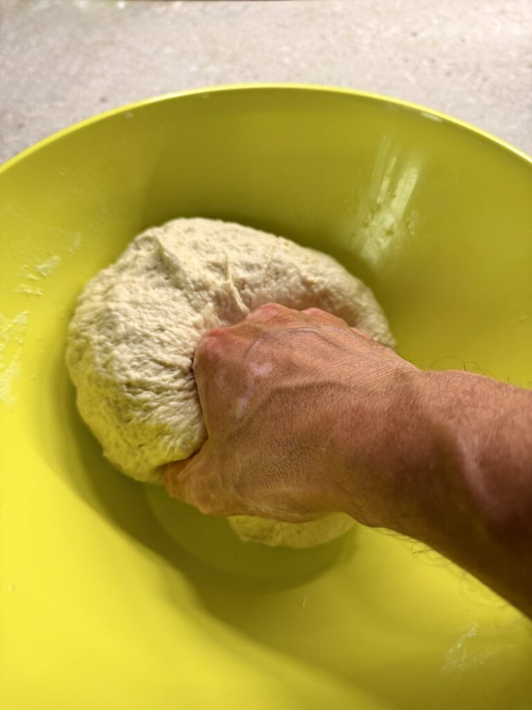 • Place in a covered bowl and let rise at room temperature for 1–1 h 30, until doubled.