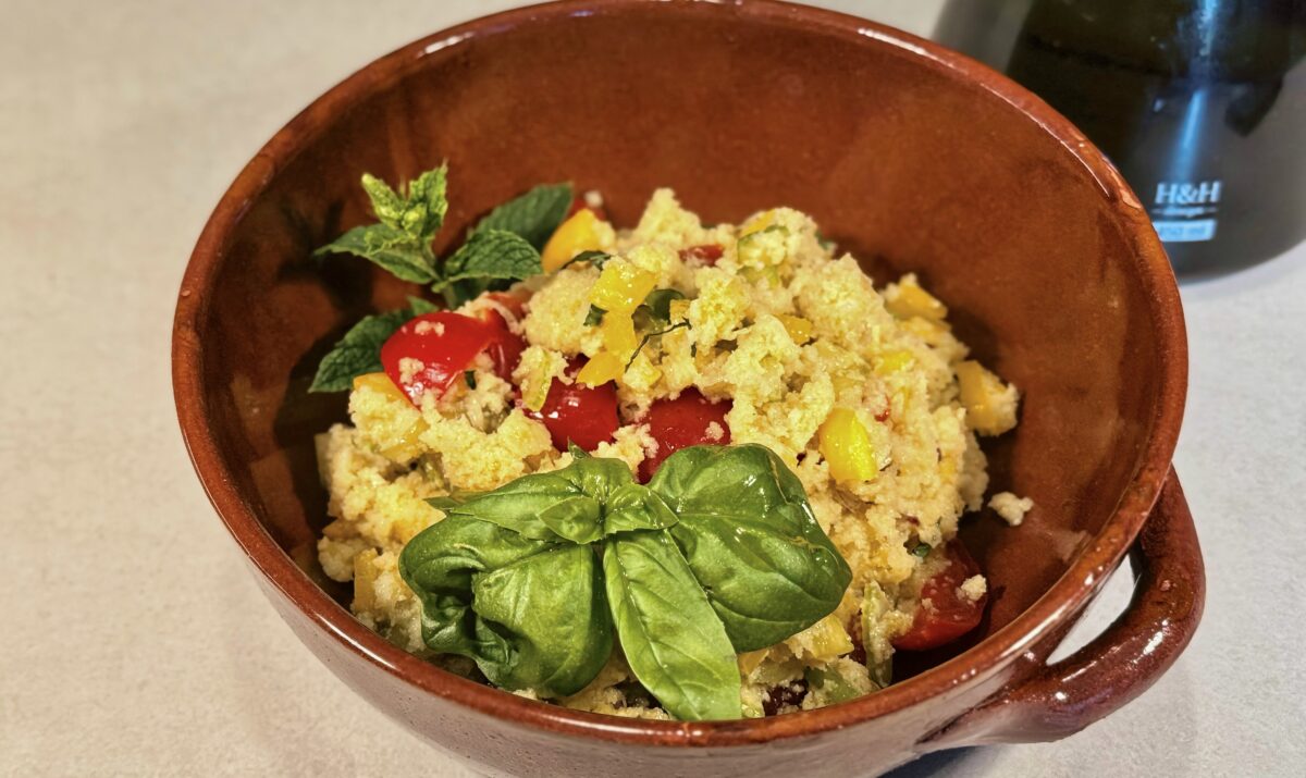 One of the dishes that best captures this idea is panzanella: a humble salad made from stale bread, garden vegetables, fragrant herbs, and nothing more than a generous drizzle of precious Tuscan extra virgin olive oil.