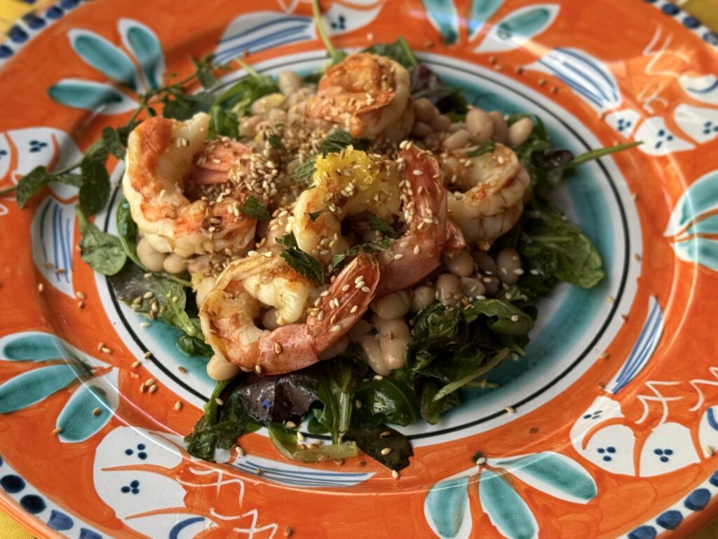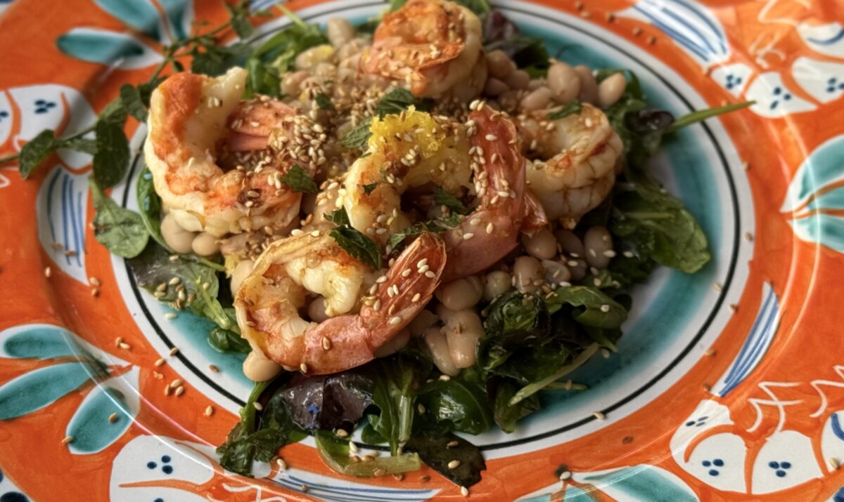 A warm salad can be much more than just a light dish — it’s a refined balance of textures and temperatures. In this recipe, creamy cannellini beans and grilled prawns are served warm over freshly dressed greens, creating a delightful contrast that’s both comforting and refreshing. A touch of lemon zest, mint, and toasted sesame completes the flavor profile, making this salad perfect for a light summer lunch or an elegant appetizer.