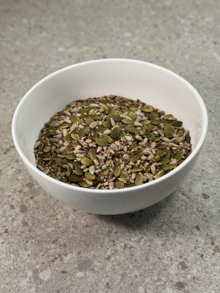 200 g mixed seeds (flax, pumpkin, sunflower, sesame…) soaked in water for 1 hour